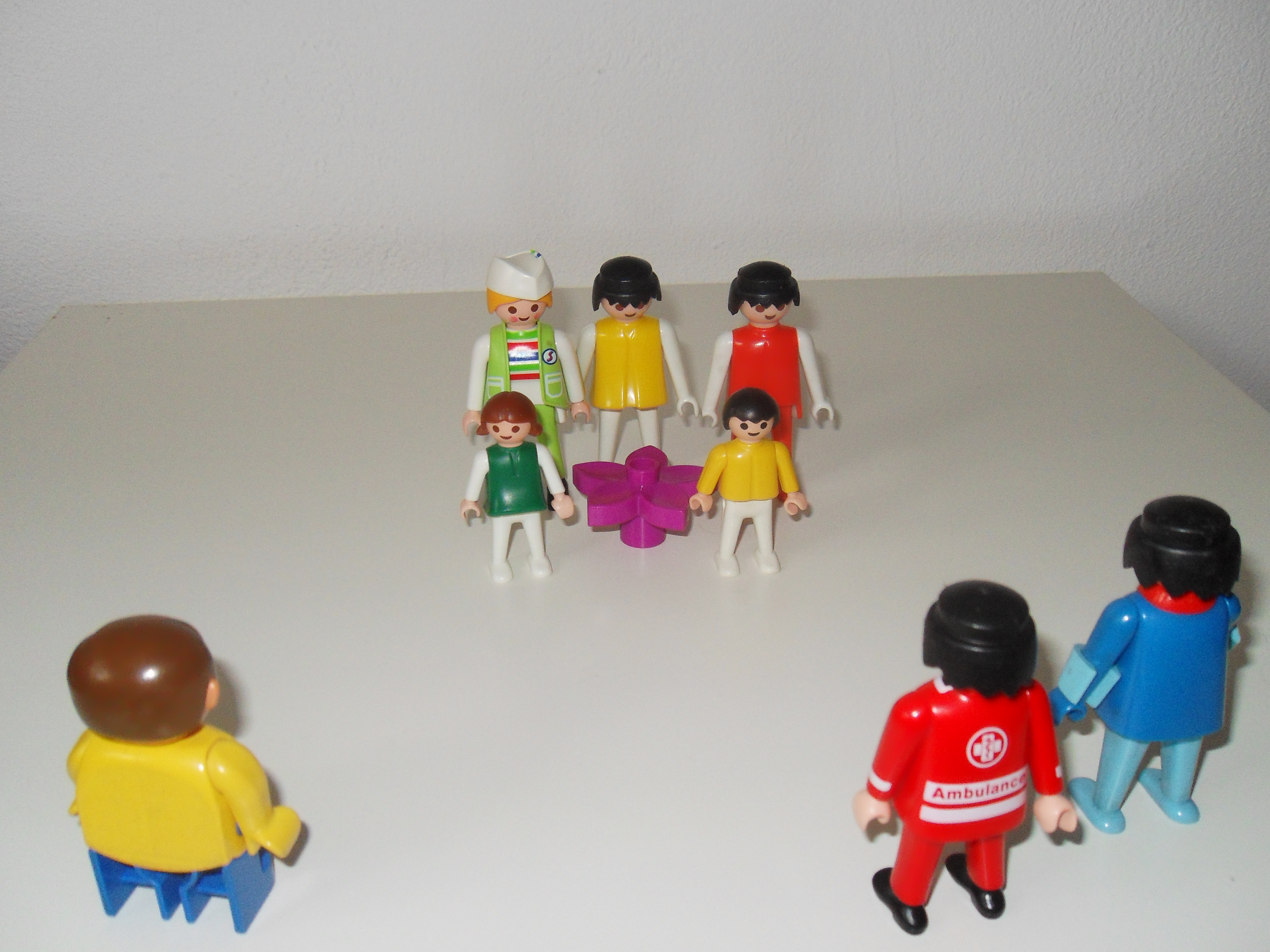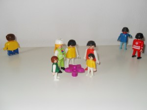 De rest van de tijd praten we over hoe Françoise en haar dochters de kinderen zouden kunnen helpen om te gaan met hun ‘afwezige’ vaders. We zetten de poppetjes anders: de vrouwen en kinderen nog steeds dicht bij de mooie bloem – maar niet meer krampachtig en gesloten eromheen. En de mannen, de vaders komen meer in beeld. Want kinderen steunen in hun zoektocht naar verbinding met de vader, kan alleen door samen te kijken naar wat is en door samen te bespreken wat nodig is, wat deugd zou doen, en wat mogelijk en haalbaar is. Alleen zo kan hartpijn vermeden, verzacht, samen gedragen worden.